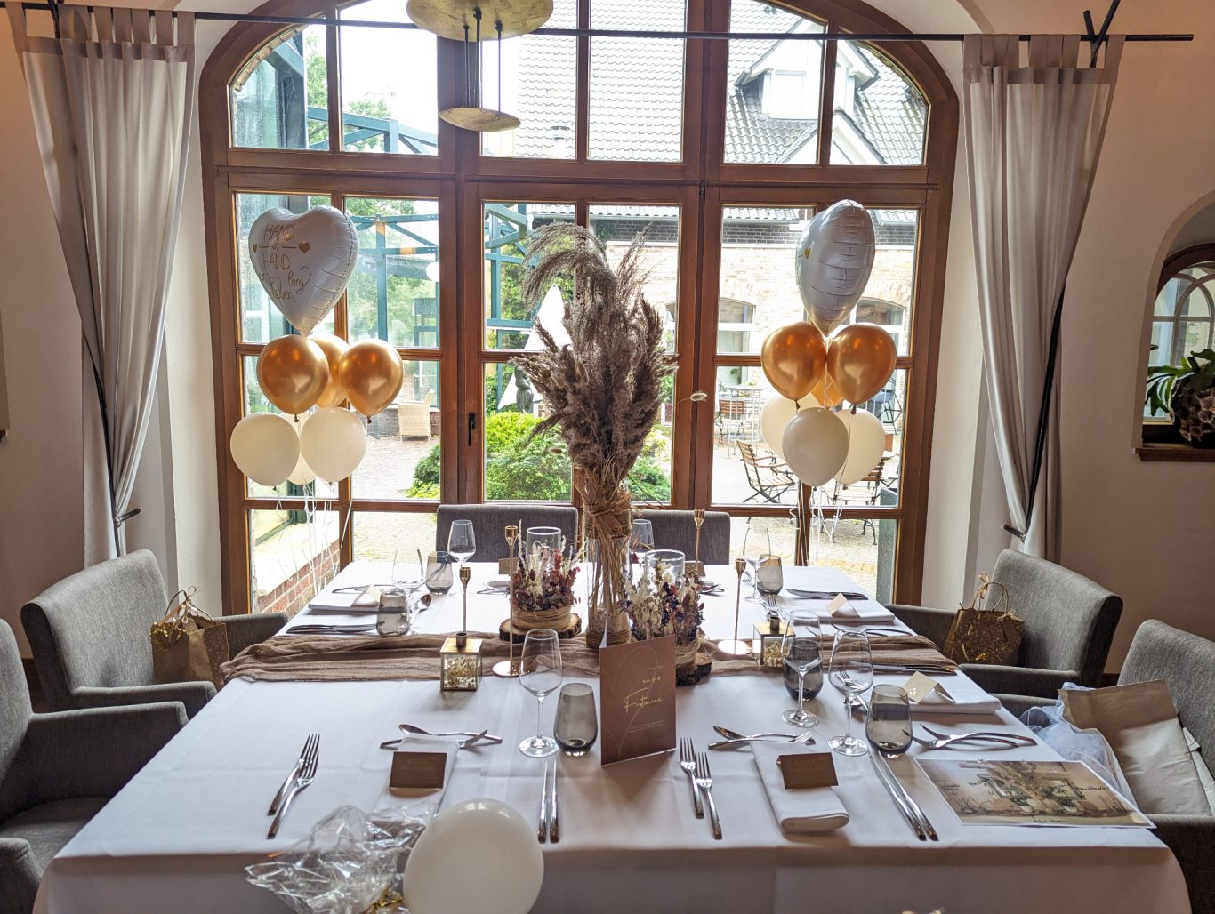 Das Wasserschloss in Voerde - eine stilvolle Location für eine Hochzeit und die Ballondeko integrierte sich perfekt in das Ambiente.