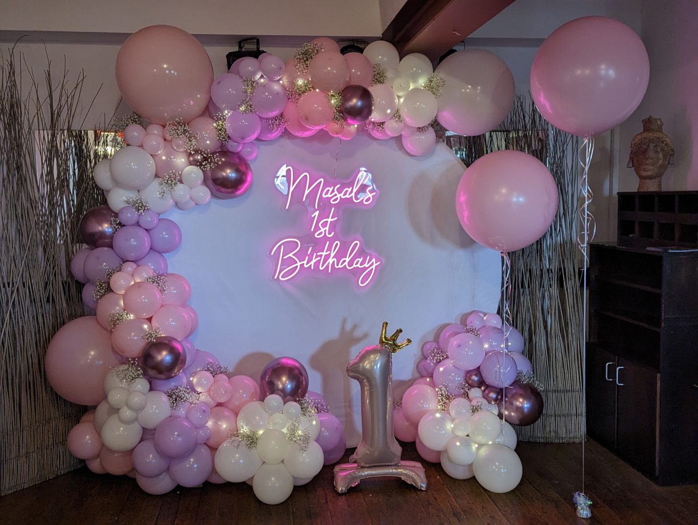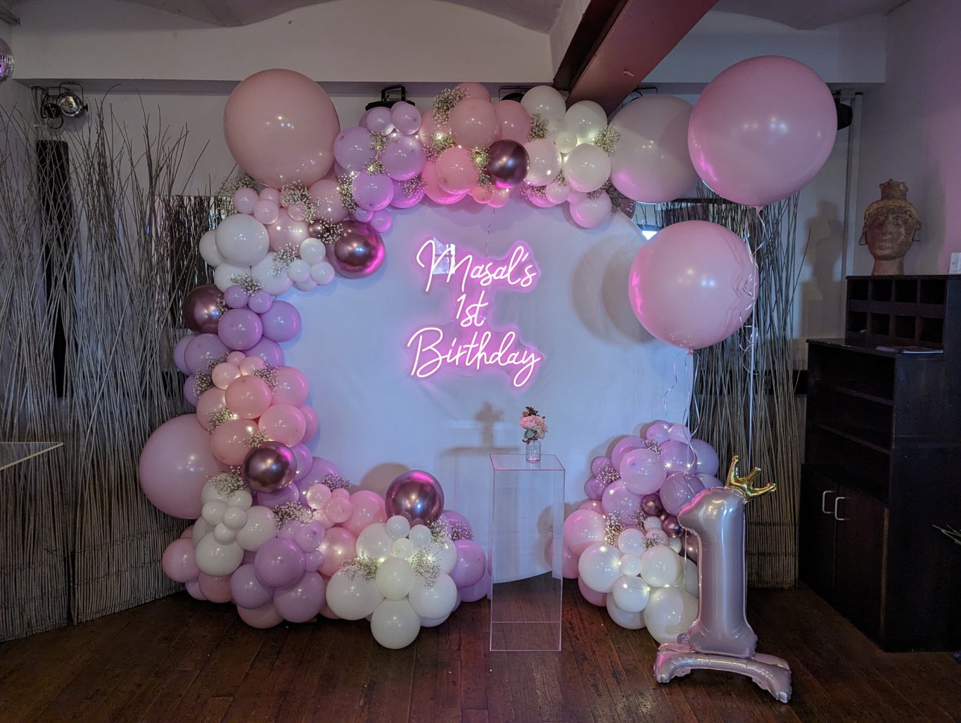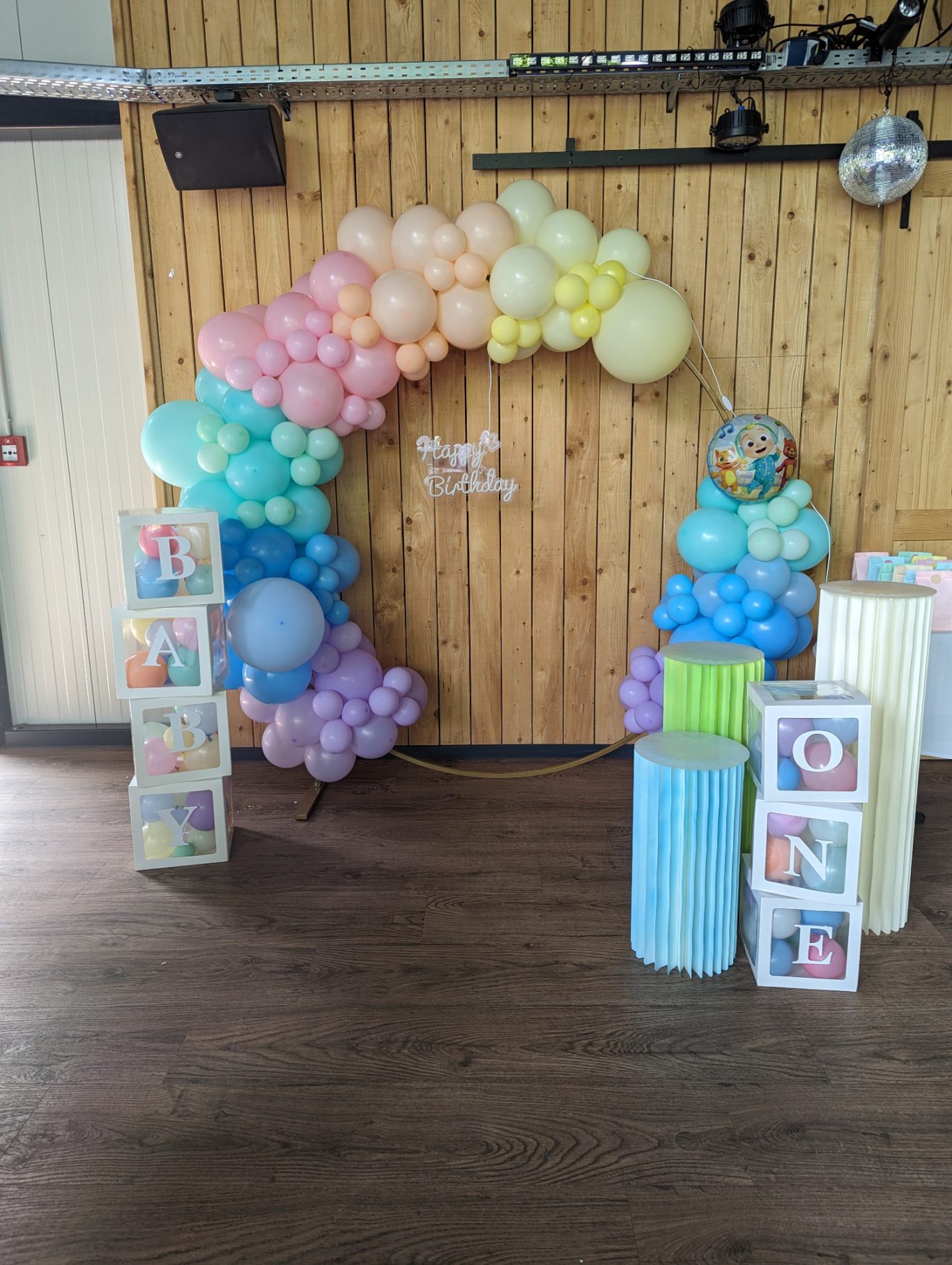 Babys 1st Birthday in pastell. Große Räume zum Feiern sind meist sehr schlicht gehalten, doch mit einem schönen Bogen bekommen sie Charme und ich bekomme immer gleich Lust mitzufeiern ;)