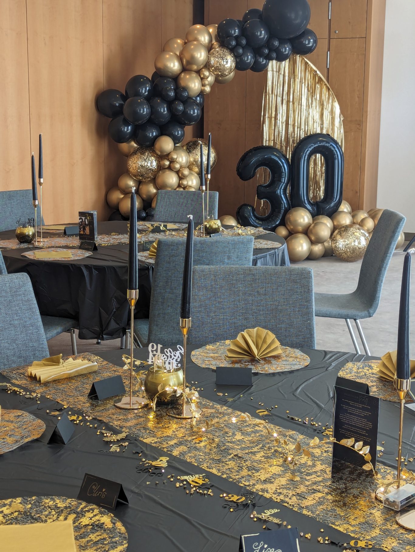 Mega Hintergrund für die Fotobox zum 30. Geburtstag. Dazu alles in schwarz/gold gehalten - es sah wirklich grandios aus!!!