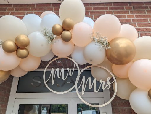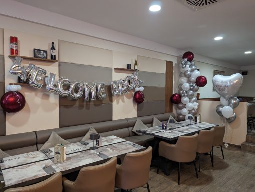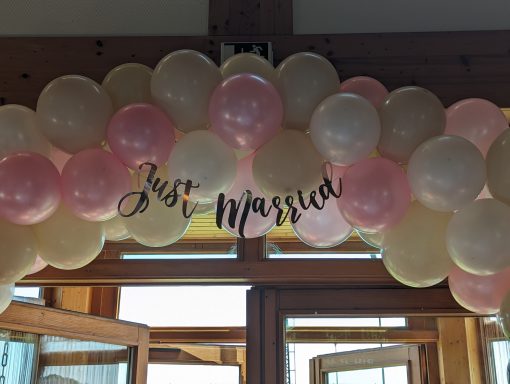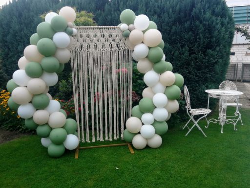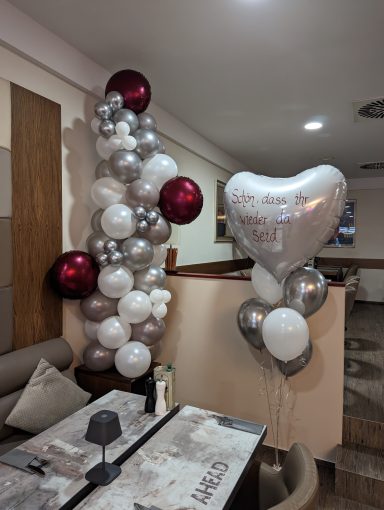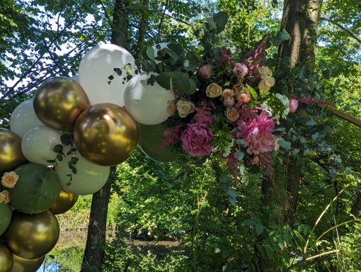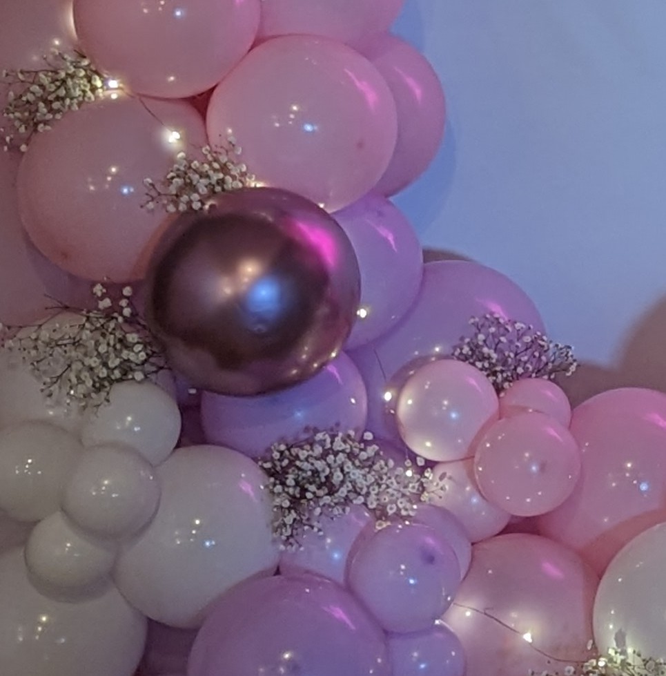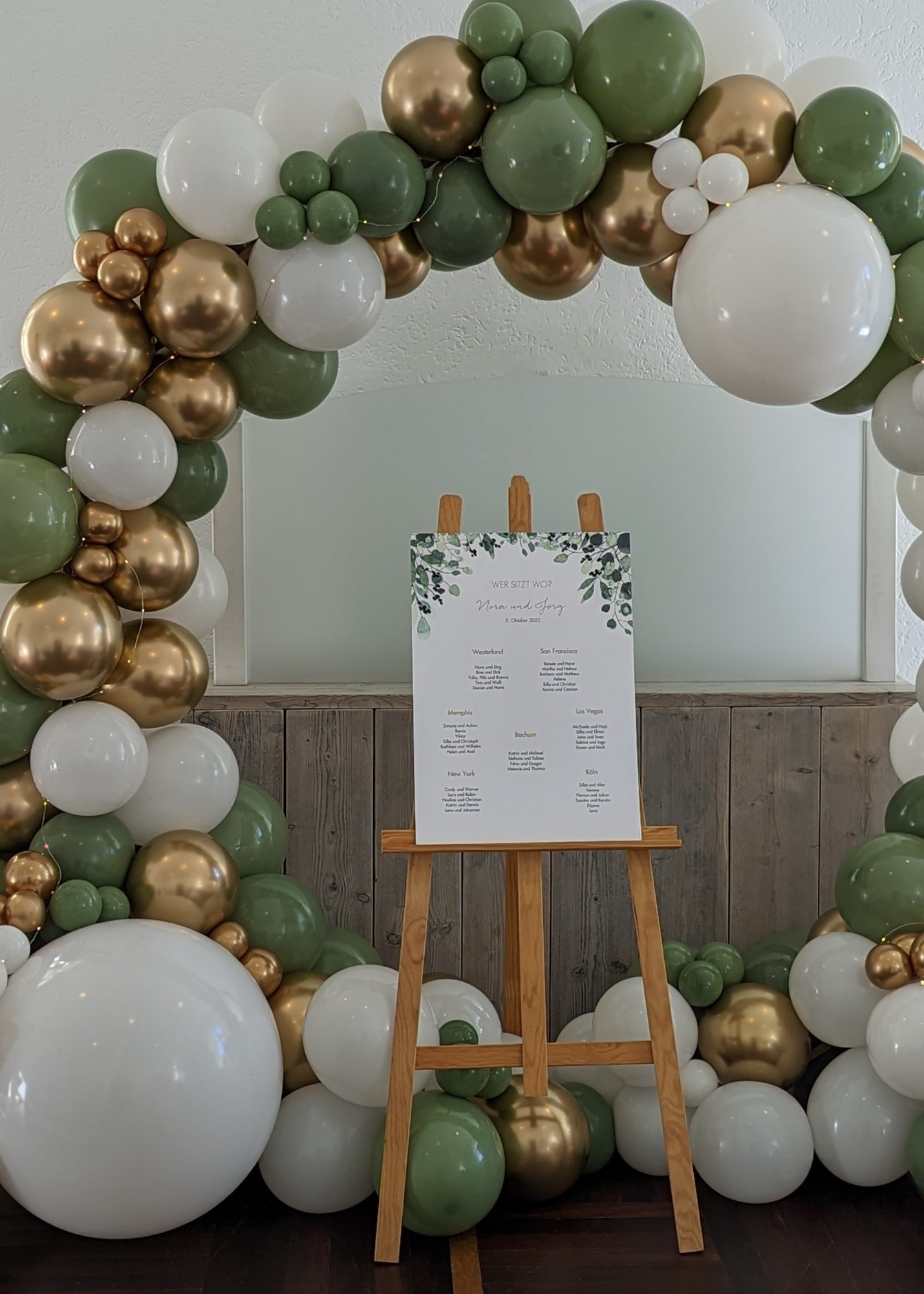 Ein super schöner Auftrag in Moers - Marsal´s 1ter Geburtstag. Ein sehr üppiger Rundbogen mit weißem Hintergrund, LED-Lichterkette und viel weißem Schleierkraut. Den LED-Schriftzug hatte mir die Kundin zur Verfügung gestellt.