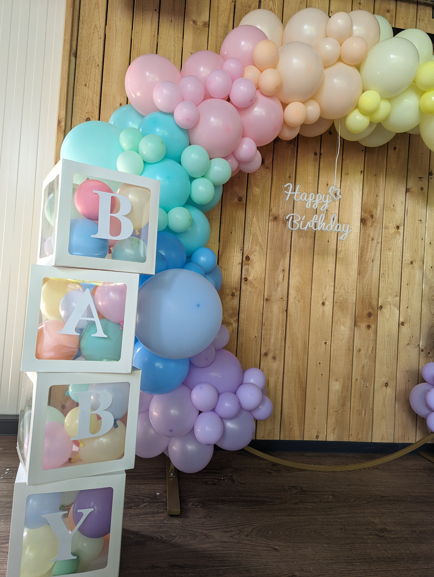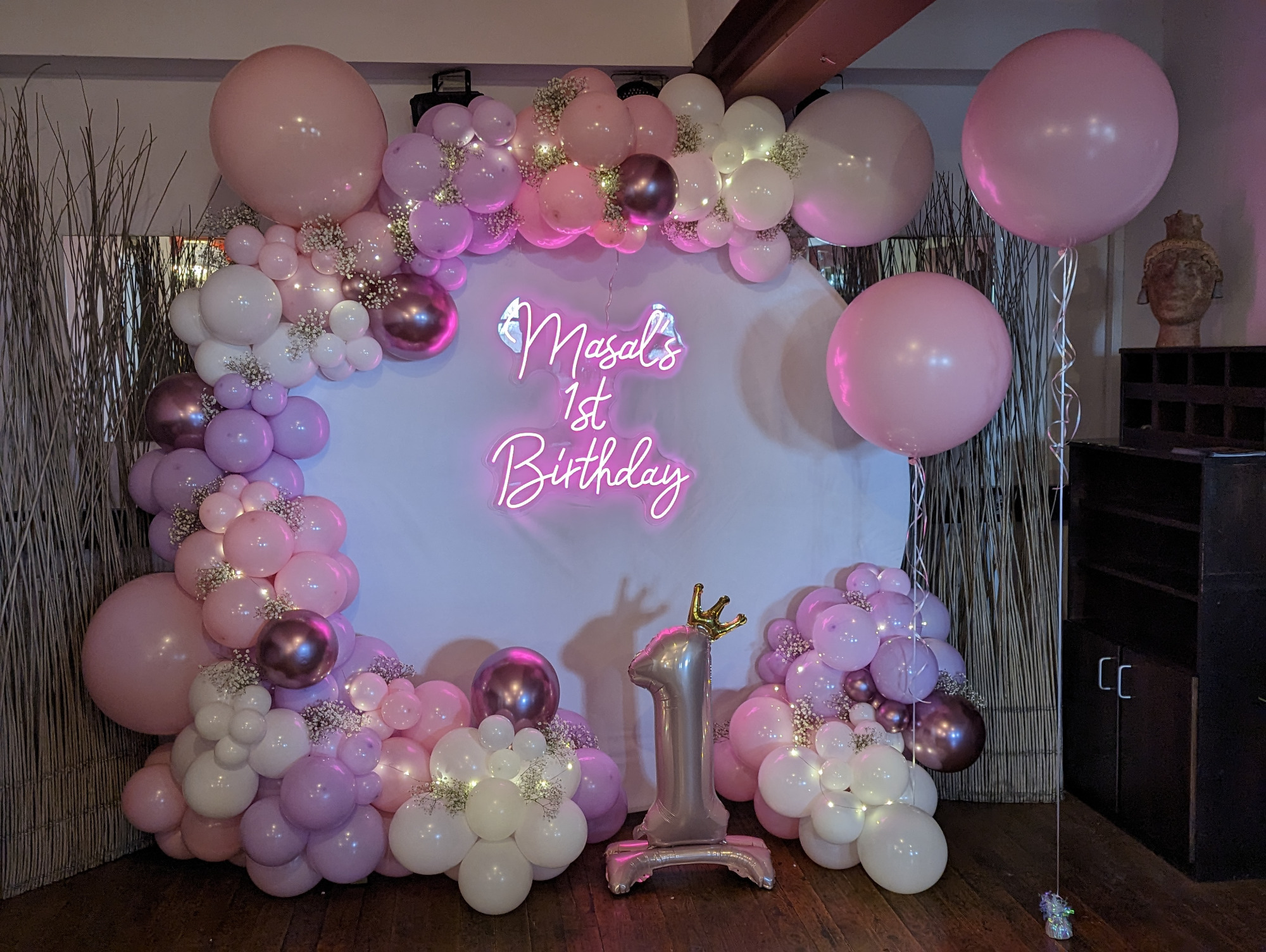 Babys 1st Birthday in pastell. Große Räume zum Feiern sind meist sehr schlicht gehalten, doch mit einem schönen Bogen bekommen sie Charme und ich bekomme immer gleich Lust mitzufeiern ;)