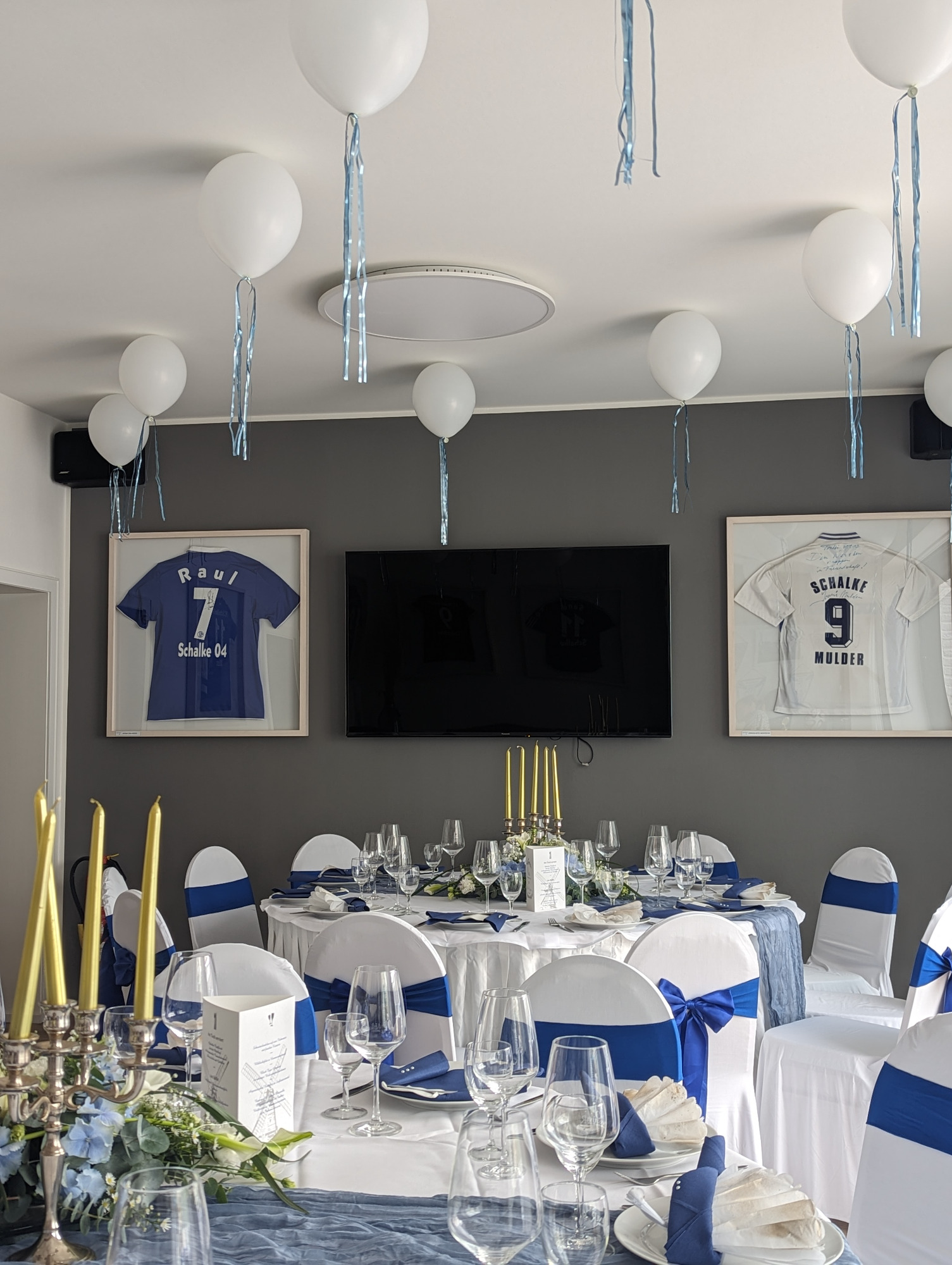 Schalkefans feiern Hochzeit - das dezente blau lässt dennoch Hochzeitsfeeling aufkommen.