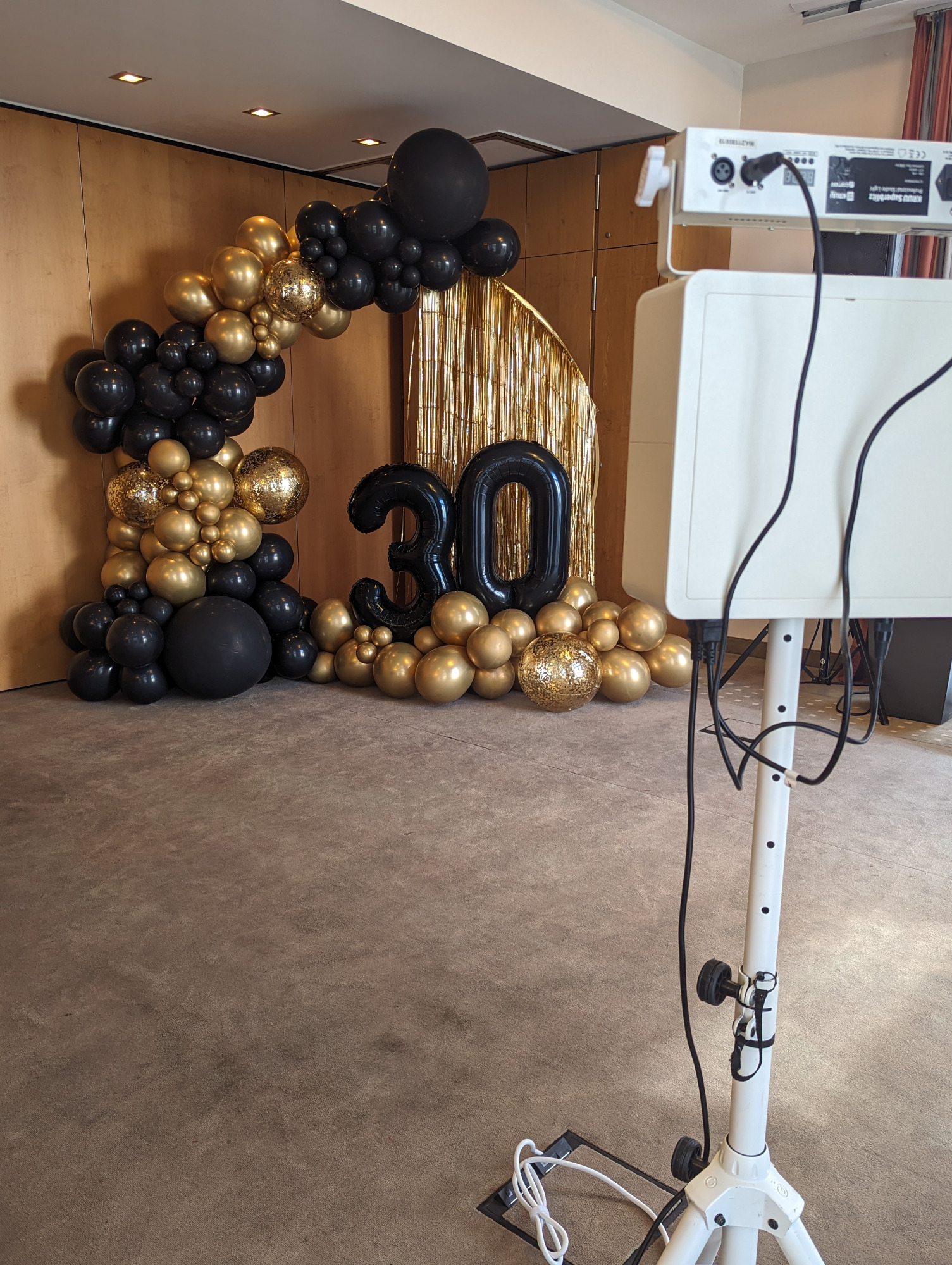 Mega Hintergrund für die Fotobox zum 30. Geburtstag. Dazu alles in schwarz/gold gehalten - es sah wirklich grandios aus!!!