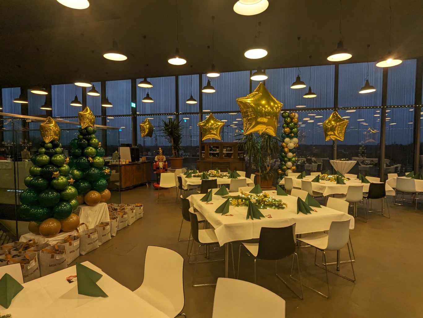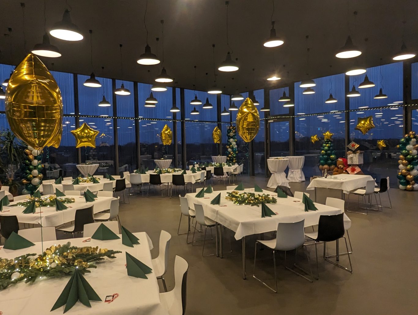 Weihnachtsfeier MSL Mobile Fahrstrasse GmbH, Dekoration der Skylounge im Textilwerk Bocholt