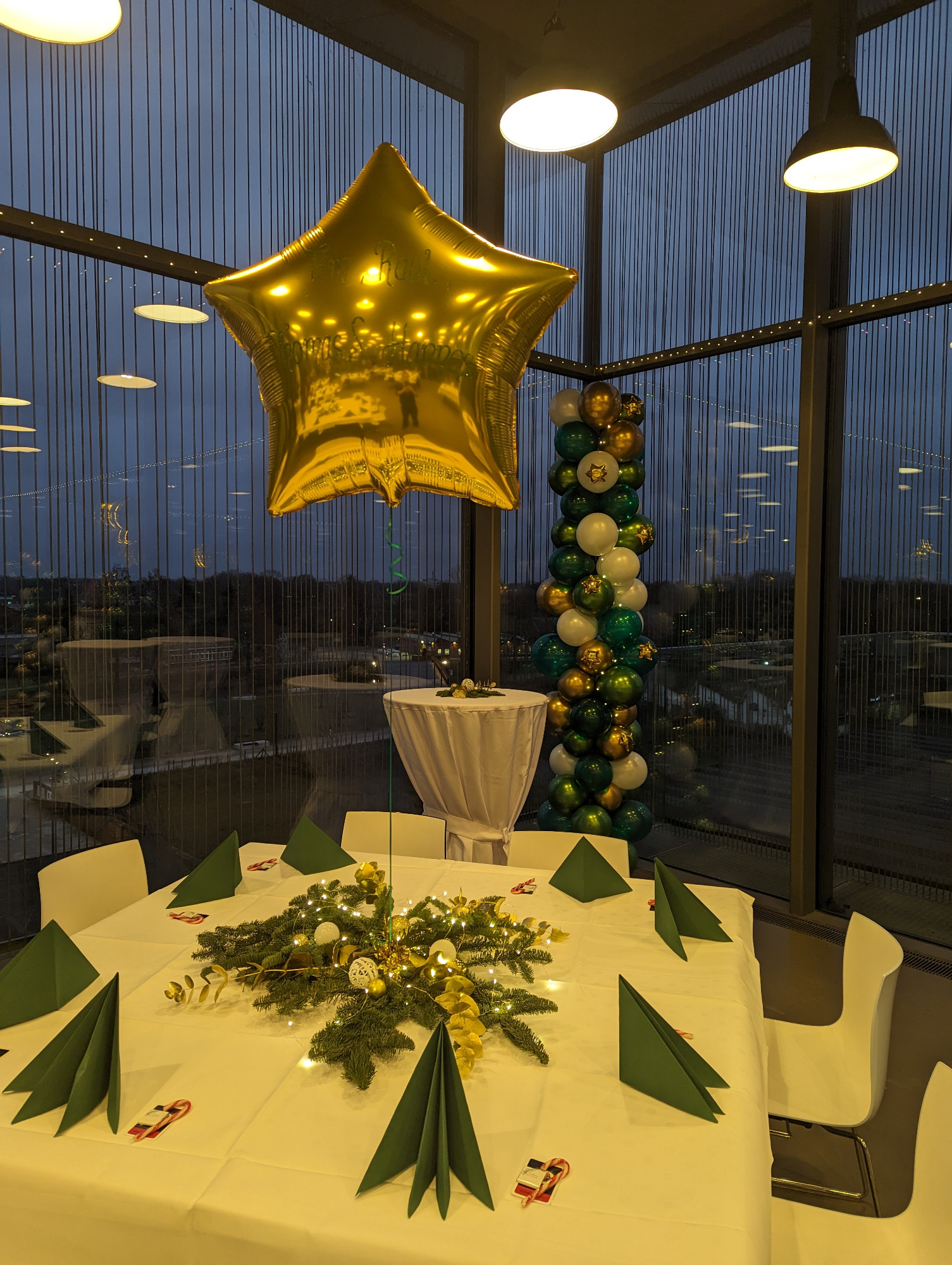Weihnachtsfeier MSL Mobile Fahrstrasse GmbH, Dekoration der Skylounge im Textilwerk Bocholt